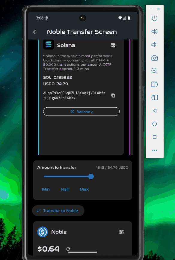 - Mint event. The app retrieves the signed attestation from Circle and uses it to mint USDC on the destination chain. A fee is collected onchain during this process.